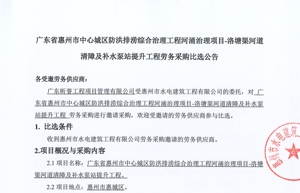 惠州市增江龍門段治理工程施工(一標(biāo)段)勞務(wù)采購中選候選人公示……